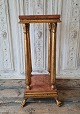 Piedestal på løvefødder i forgyldt træ med rødbroget marmorplade |