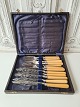 Engelsk forsølvet fiskebestik med skaft i ben til seks personer i original æske. |