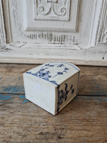 Tedåse med musselmalet dekoration fra 1700tallets slutning Der forekommer ingen fabriksstempler Højde 10 cm.