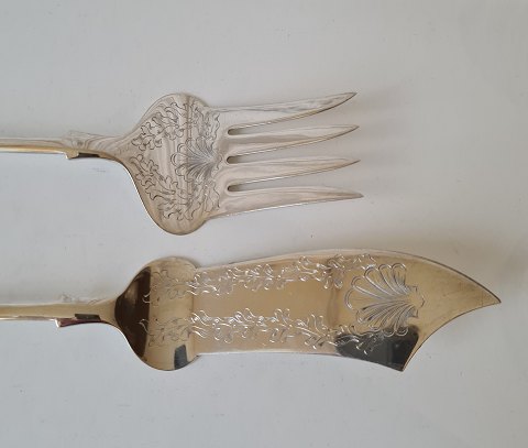 Mussel fish serving cutlery in silver from 1913 Stamped the three towers 1913 - G.F Length 25.5 - 30 cm. Appears with engraving on the back