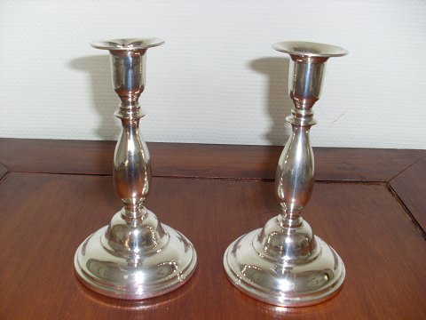 Par danske sølvstager. 16 cm. høje. Den ene lysestage fremstår med lille bule på manchet.