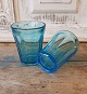 Søblå vandglas i presset glas produceret på Fyens eller Kastrup glasværk fra 1910. Højde 9,5 cm. Lager: