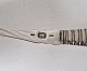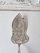 Stor fiskespade i sølv med perlemors håndtag. Sølv laf med gennembrudt kant, smukt dekoreret med en engel og blomster. Perlemors håndtaget er smukt udskåret med en påugl. |