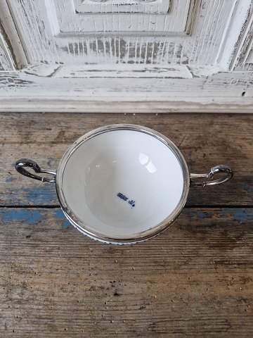 Royal Copenhagen Musselmalet halvblonde sukkerskål med forsølvet montering. 1. sortering Højde 9 cm. Mål 12 x 18,5 cm.
